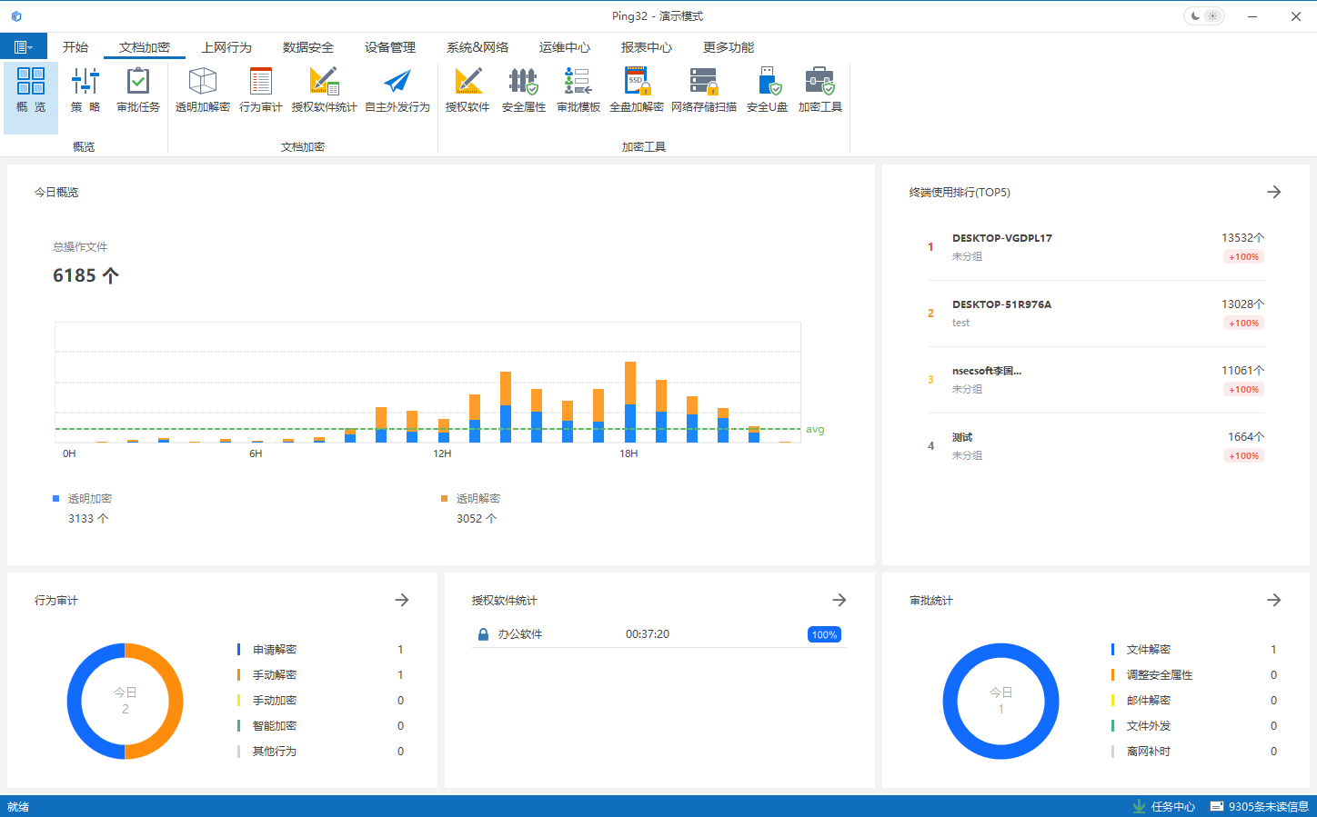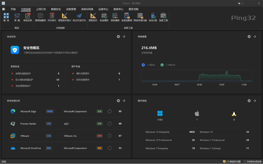 A3:Ping32 采用 AES-256 与国家密码算法,保证数据加密安全,并支持多平台部署(Windows、Mac、Linux等)。系统提供可视化报表、自动盘点、权限控制和使用分析等功能,结合日志记录,实现全面、安全、高效的软件资产管理。